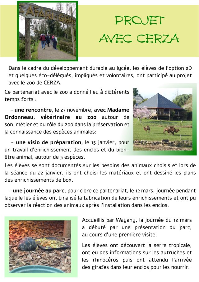 Projet avec le zoo de Cerza - Lycée Augustin Fresnel - Bernay